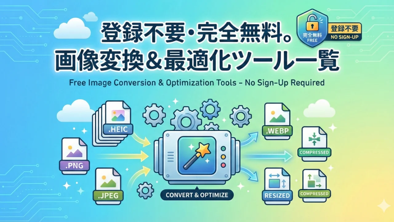 画像を一括でWebPに変換・軽量化。好みのサイズへリサイズし、文字入れや透かしも同時処理。ブログ画像の準備がこれ1つで完結します。