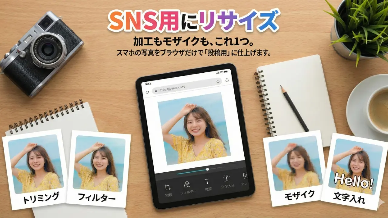 スマホの写真をブラウザだけで「投稿用」に仕上げます。
