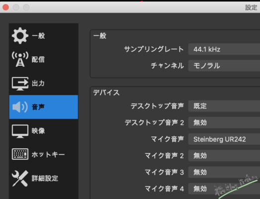 - デバイスのマイク音声を『UR242』を選択